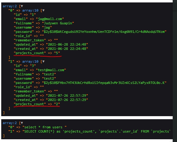 echo "Total Project of ".$user['fullname'].": ". $user['projects_count'];